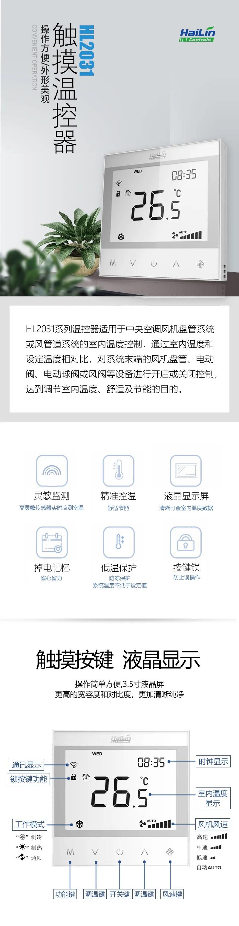 海林HL2031溫控器凝聚了海林節(jié)能21年匠心工藝,專為每一個(gè)認(rèn)真對(duì)待生活的用戶傾情打造,是簡(jiǎn)單實(shí)效的室內(nèi)環(huán)境舒適體驗(yàn)誠(chéng)意之作!