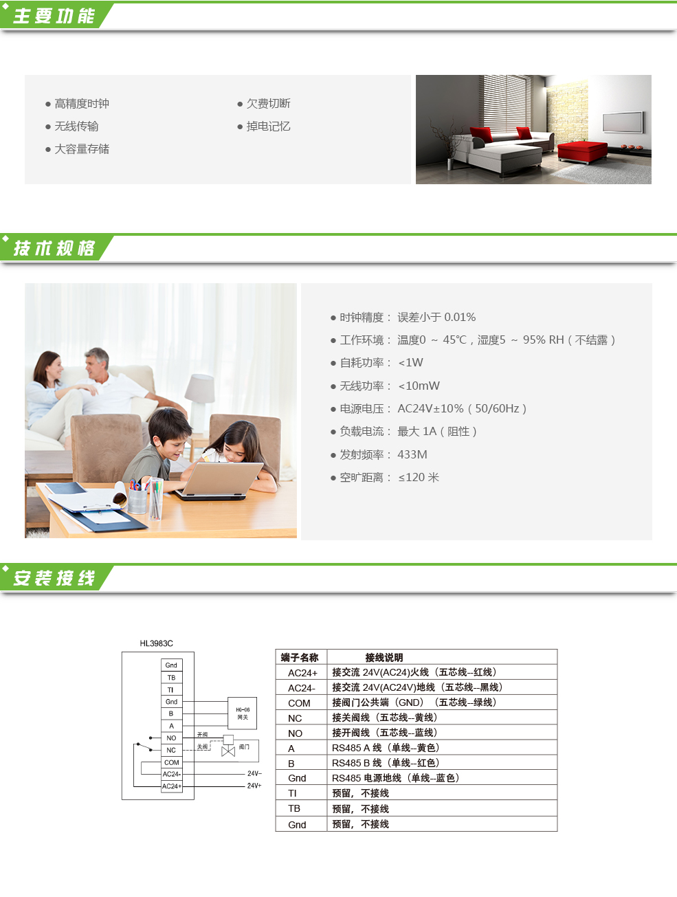 可與無線溫控器HL3983S或無線溫控器HL3963-S2配套使用。