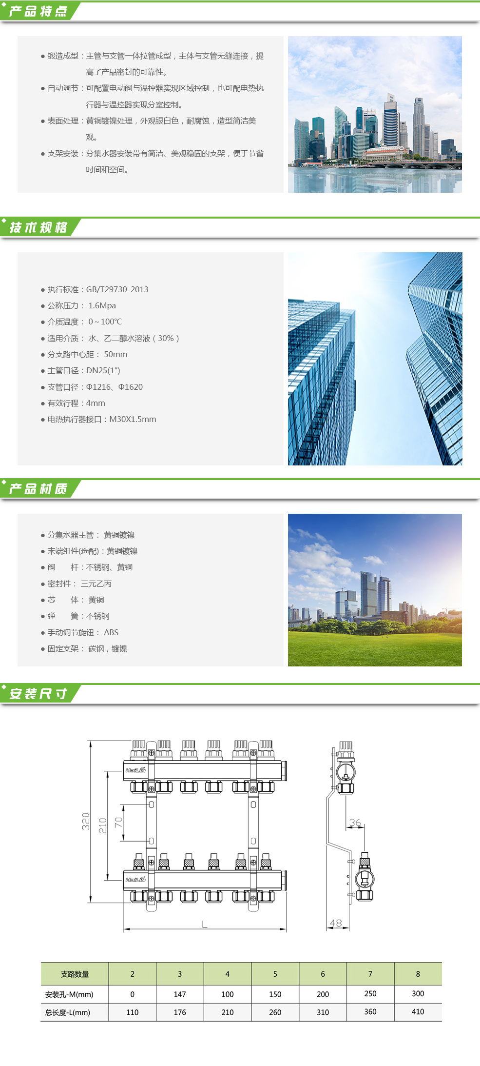 TH35系列分集水器為黃銅整體型材一體式分集水器,適用于地板采暖系統(tǒng),控制輻射地板采暖系統(tǒng)的熱能。分集水器各回路均內(nèi)置了調(diào)節(jié)水量的閥芯??杉友b電熱執(zhí)行器和溫控實(shí)現(xiàn)獨(dú)立分室度制。用戶根據(jù)需要可自行設(shè)定室溫,溫控器會(huì)自動(dòng)檢測(cè)房間溫度,并向執(zhí)行器輸出信號(hào),關(guān)閉或打開此房間的執(zhí)行器,使室溫保持在設(shè)定溫度范圍內(nèi)。也可以在分集水器主管上加裝電動(dòng)閥,與溫控器配套使用 ...